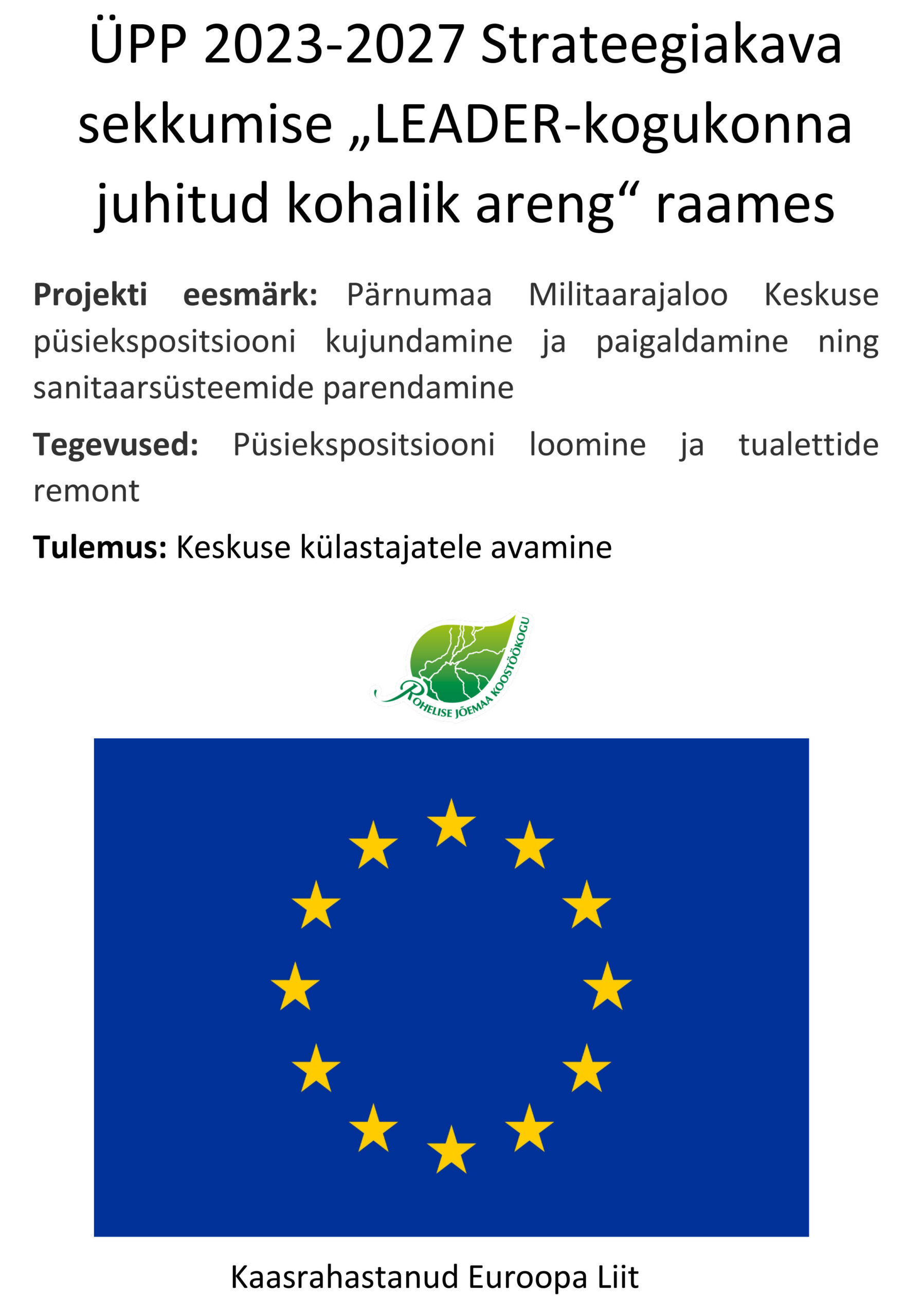 Meil on hea meel märkida ja tulebki märkida, et LEADER programm toetab ning püsiekspositsioon valmib. Visuaalne pool täieneb ja eesmärk on varsti käegakatsutav ning silmaga nähtav. Aitäh, Rohelise Jõemaa Koostöökogu ja teostaja Seri Disain OÜ.